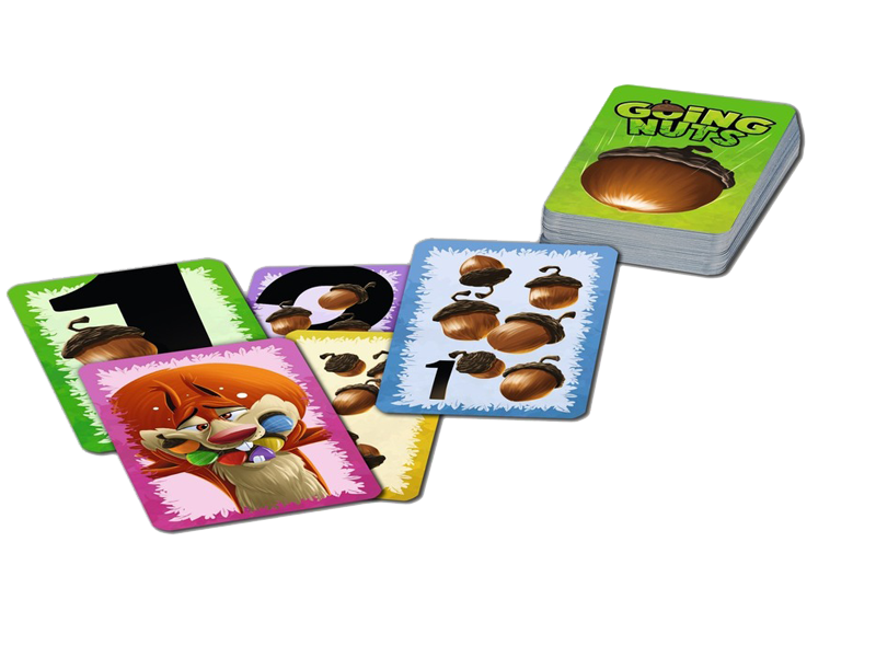 Aber „Going Nuts“ ist kein simples Kartenablegespiel für Kinder , denn mit den frechen Eichhörnchen, die zwischendurch immer wieder auftauchen und für Aufregung sorgen, könnte man fast verrückt werden. Sie verstecken sich zwischen den Zahlenkarten und alle sind nun gleichzeitig gefragt, die geforderte Aufgabe schnellstmöglich zu erfüllen (etwa sechs Karten in die vorgegebene farbliche Reihenfolge oder die Anzahl der Nüsse in die geforderte Abfolge zu bringen). Als Beute winken die Karten der Ablagestapel aller mitspielenden Personen und die Eichhörnchen-Karte, die bei der Schlussabrechnung mit fetten Extrapunkten belohnt wird.