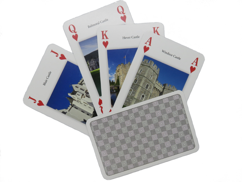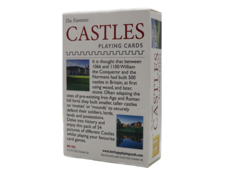 Man geht davon aus, dass zwischen 1066 und 1100 William der Eroberer und die Normannen 500 Schösser zu der damaligen Zeit errichten ließen. Diese sind Thema dieser außergewöhnlichen Sammlung an illustrierten Spielkarten. Auf 54 Karten werden unterschiedlichste Schlösser in Fotos portraitiert.